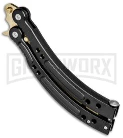 This Andux Butterfly features a stardust finished bowie blade and black handles with grippy stardust inlays.