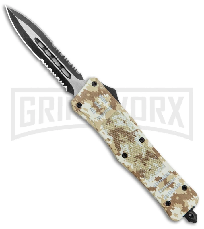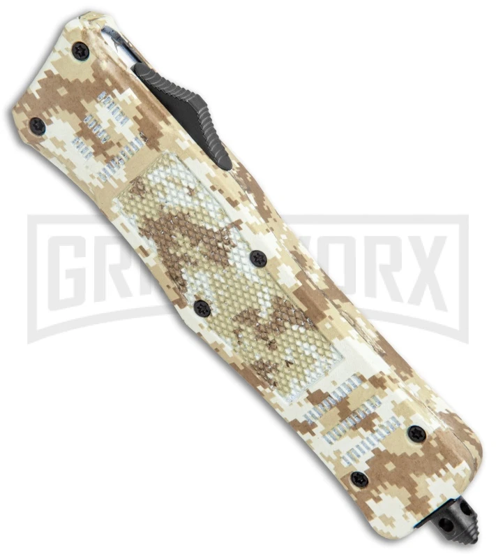 Atomic Defender Medium OTF Automatic Knife Tan Digi Camo – Dbl Serr Two Tone