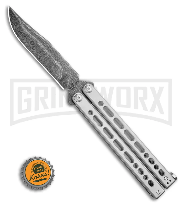 Bear Ops Bear Song VIII Gray Butterfly Knife – Clip Point Damascus Plain