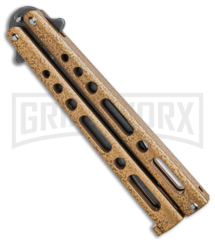 Benchmark Gold Epoxy Steel Butterfly Knife – Stonewash Plain