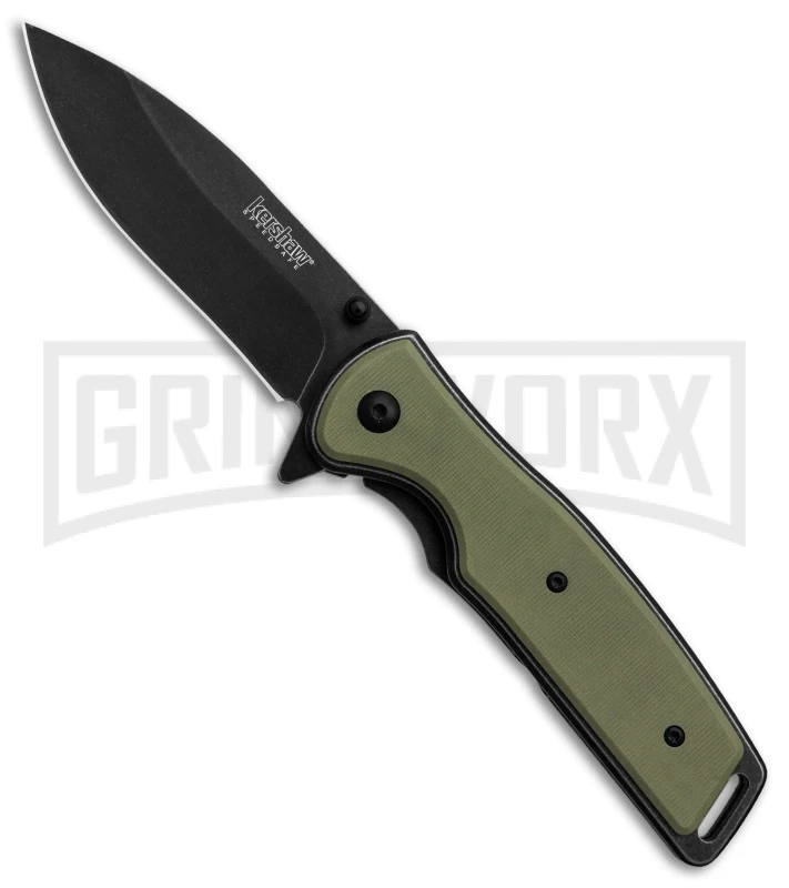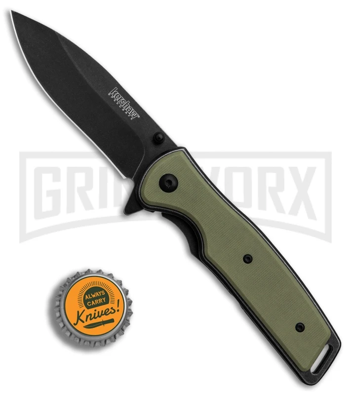Kershaw Bevy OD Green G-10 Spring Assisted Knife – Blackwash Plain