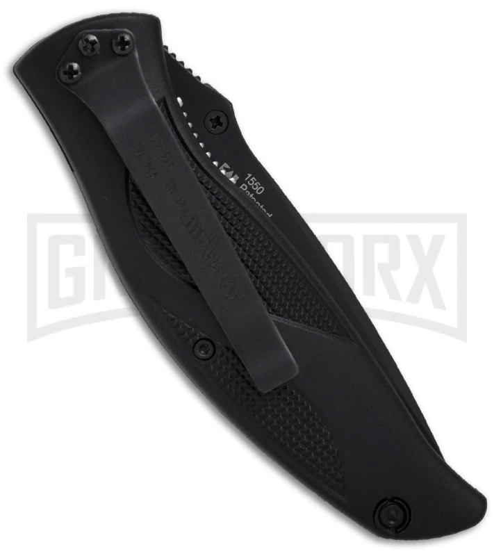 The Blackout 1550 is another great Ken Onion designed knife from Kershaw! It features a Sandvik 14C28N stainless steel blade with a Tungsten DLC black finish and a plain cutting edge. The SpeedSafe assisted opening mechanism quickly deploys the blade with a push of the thumb stud and lockup on the Blackout is solid via the steel liner lock. The glass-filled nylon (GFN) handle is lightweight and textured for positive grip and performance with a nested steel frame for strength. The removable tip-down pocket clip is comfortable for everyday carry.
