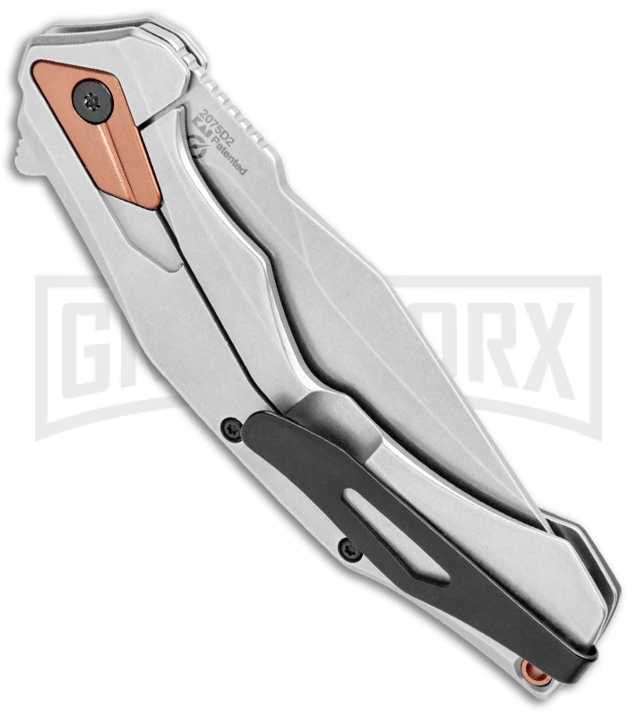 The Payout from Kershaw is a bold new design that is sure to be a favorite. It’s a full-sized knife that can withstand hard use and everyday carry. It has a burly stainless steel frame lock, a G-10 front scale, and copper finished pivot collars.