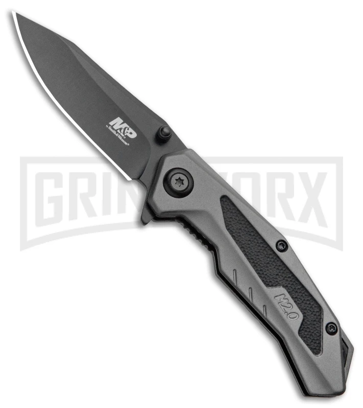 M&P M2.0 U.G. Grey Aluminum Spring Assisted Knife – Black Plain 1100040