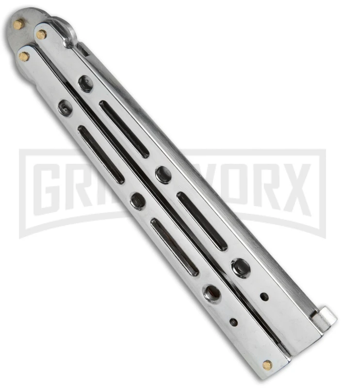 Mega Flick XL Silver Balisong Butterfly Knife – Satin Plain
