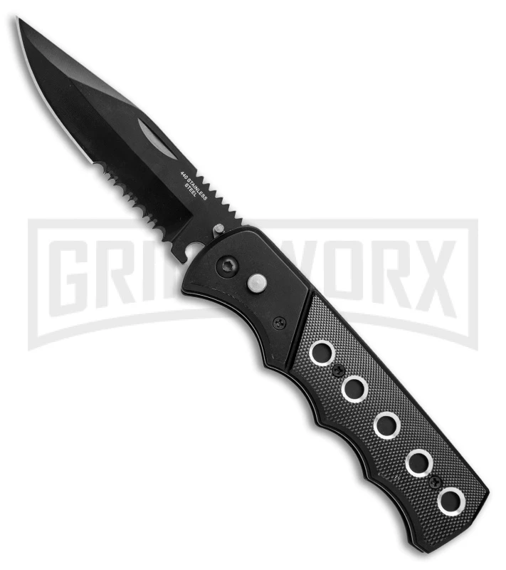 Orpheus Black Automatic Knife – Black Serr