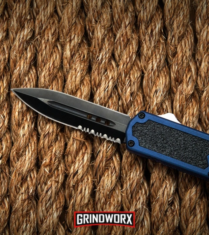 Titan Blue D/A OTF Automatic Knife – Dagger Black Serrated