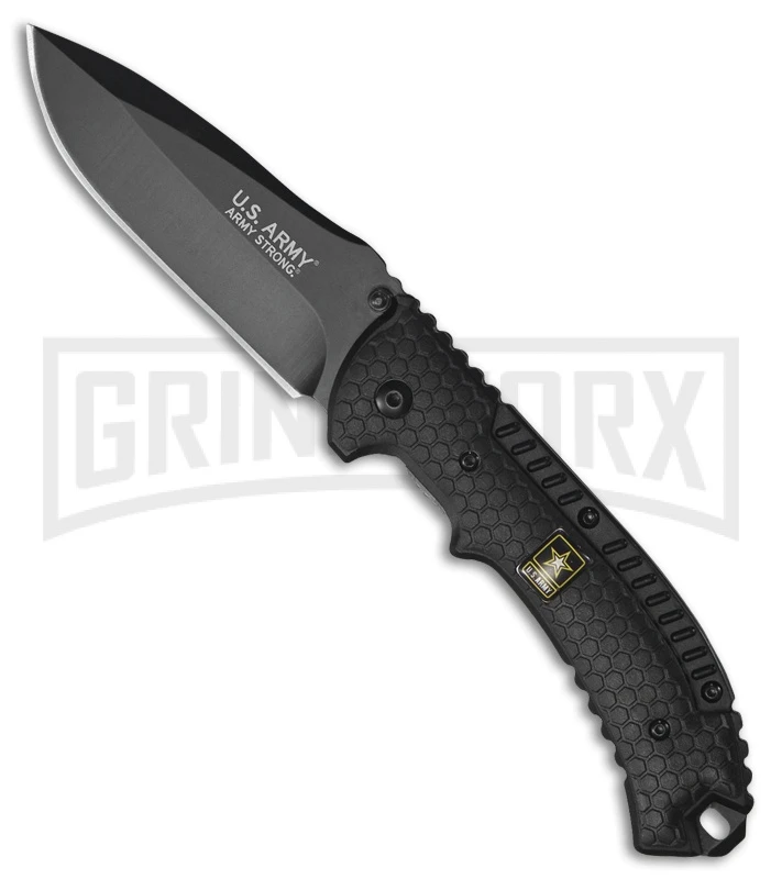 US Army Soldier Black Spring Assisted Knife – Black Plain